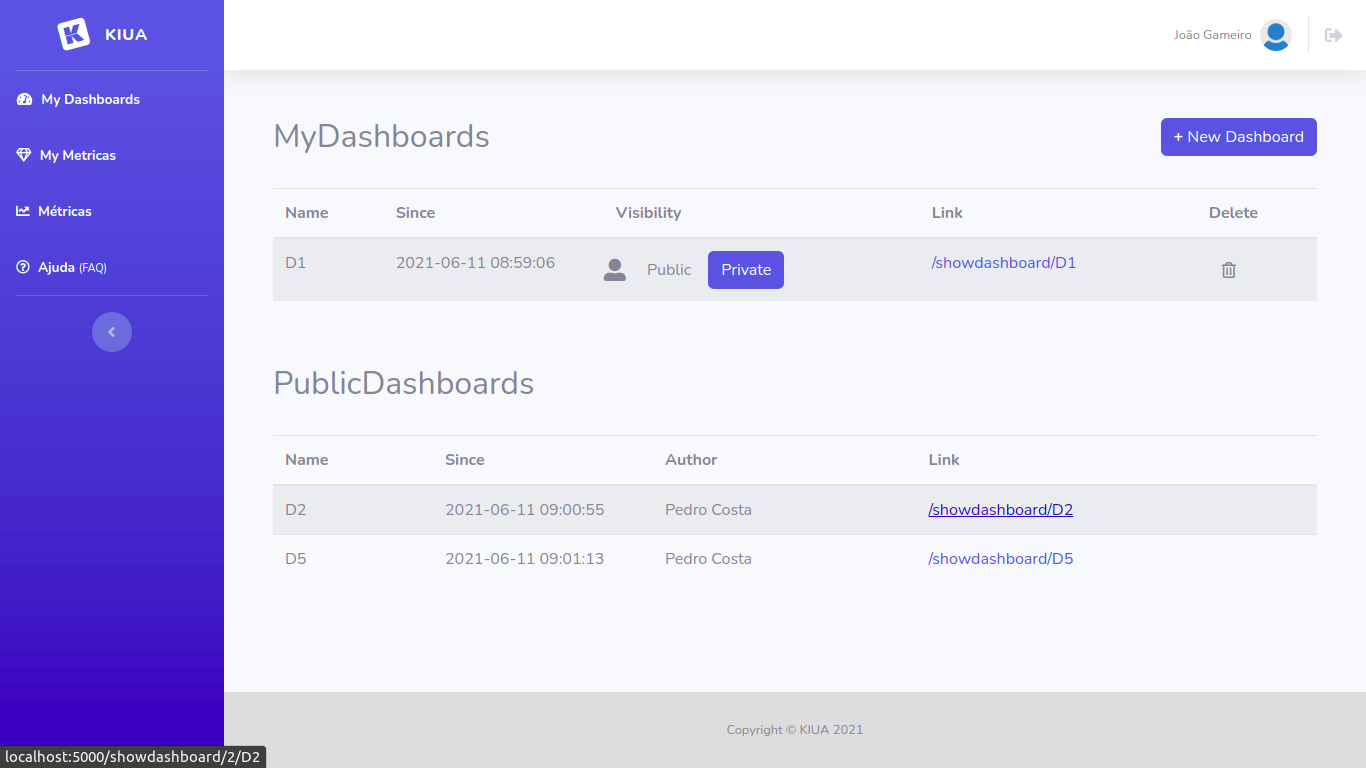 - Ponto de situação relativamente à geração de dashboards e plataforma de gestão de métricas